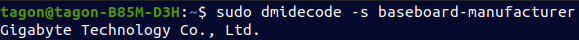 sudo dmidecode -s baseboard-manufacturer