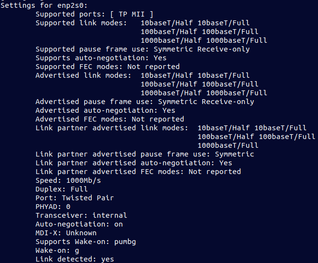 sudo ethtool 너의네트워크이름