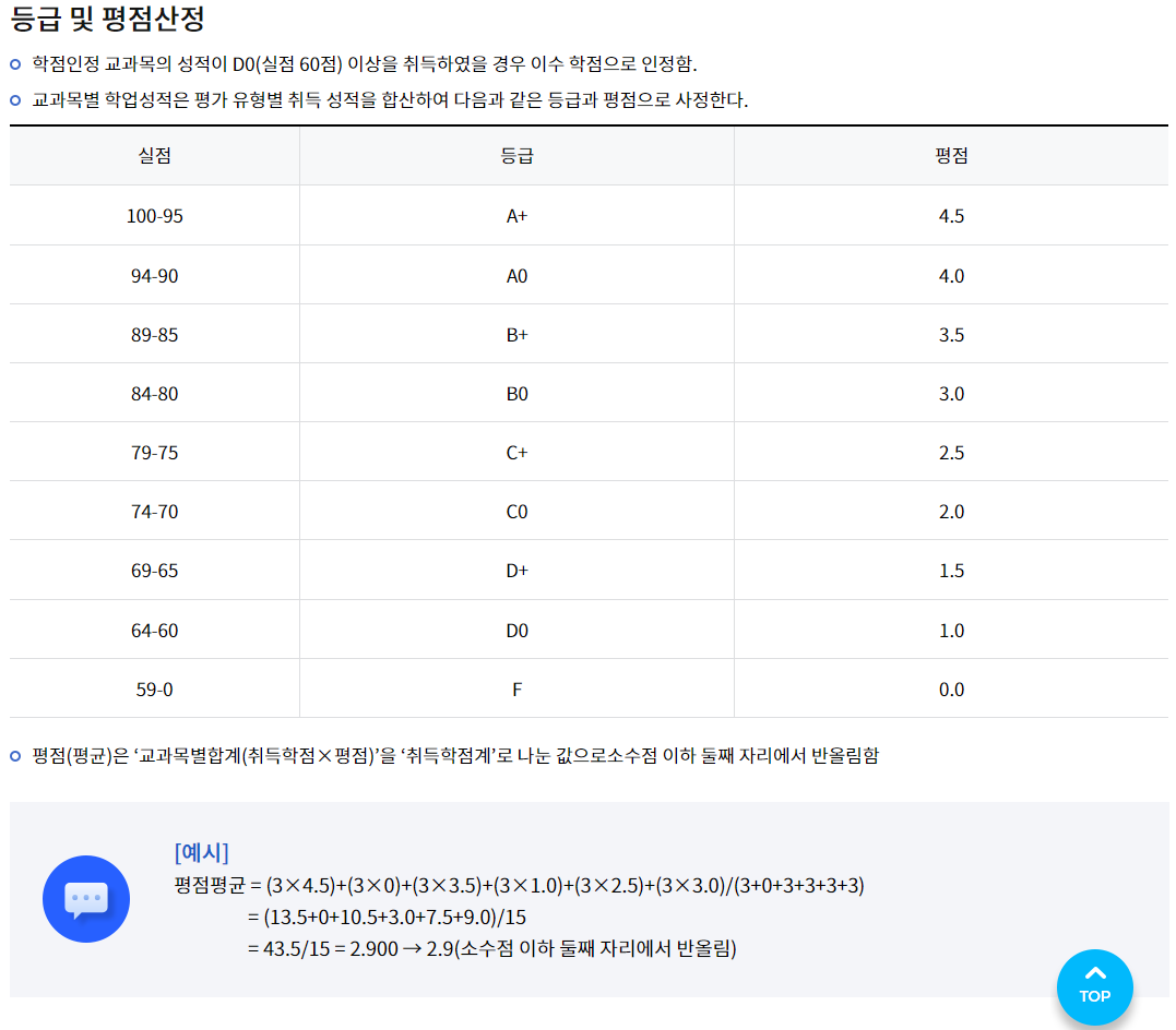 이건 방통대 사이트에서 점수 별 등급 표를 캡쳐해서 온 것이다